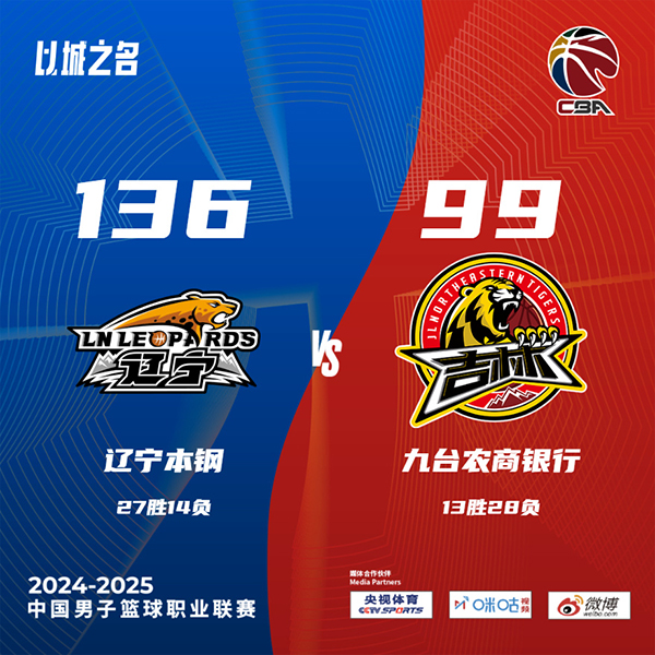 末节,辽宁本钢保持良好的状态,开局阶段便将优势扩大到42分。随着比赛的深入,九台农商银行展开反击,将分差缩小至33分。然而,辽宁本钢稳步扩大自己的优势,最终以136-99完成比赛,赢得了这场较量的胜利。