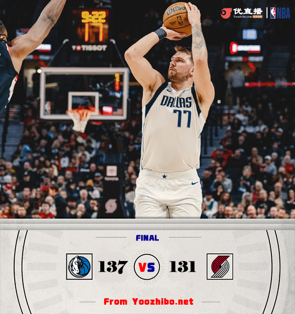 JRS直播吧讯北京时间12月2日讯 NBA常规赛继续进行,开拓者和独行侠正面对话,独行侠迎来三连胜,目前12胜8负暂列西部第6位,开拓者8胜12负排在西部第13,此役因手腕扭伤缺席5场的东契奇复出,克莱因为左脚足底筋膜炎继续缺阵,欧文右肩酸痛同样缺席。首节一上来独行侠稍显慢热,格兰特和艾顿则不断杀伤内线,帮助开拓者率先占优,华盛顿连中三分止住颓势,首节结束时开拓者领先4分,次节回来,东契奇找到进攻感觉单节贡献15分,同时连续送出助攻串联全队,独行侠多点开花后来居上,半场战罢,独行侠反超3分。易边再战后独行侠再度下起三分雨,双方分差一度来到两位数,但西蒙斯突然爆发单节狂揽24分,两队火热对攻陷入僵持,格莱姆斯飚中压哨三分,三节结束后独行侠保持3分优势,末节上来,独行侠内外结合再度确立两位数领先,开拓者回敬8-2小高潮拉回悬念,决胜时刻独行侠关键挑战成功,开拓者追分未果,最终独行侠137-131击败对手迎来四连胜。