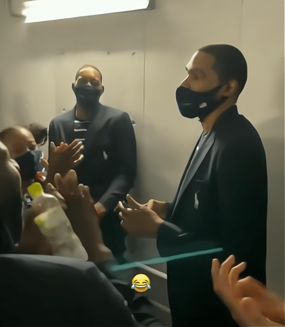 只见所有美运动员将杜兰特围在墙角,全部对着他,有人带头高唱“Happy birthday to you……”之后,竟然所有运动员都开始大合唱,杜兰特直接被这阵势给吓懵,他转头看了一圈,满脸无奈,眼神里充满无辜和无助。