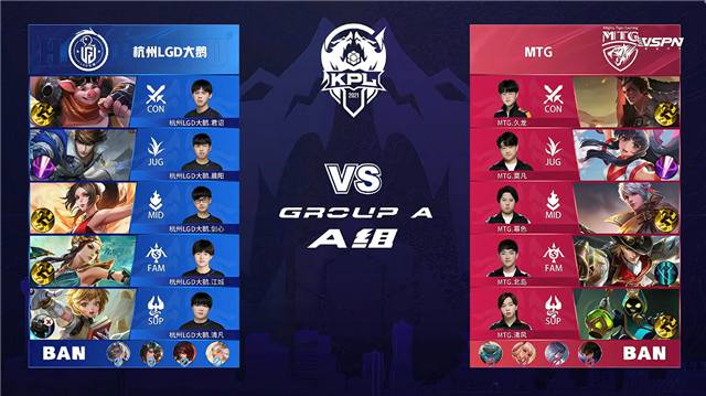 JRS直播吧讯 5月15日2021KPL春季赛常规赛第八周第三日第二场,由A组的MTG对阵杭州LGD大鹅,以下是本场比赛快讯。
