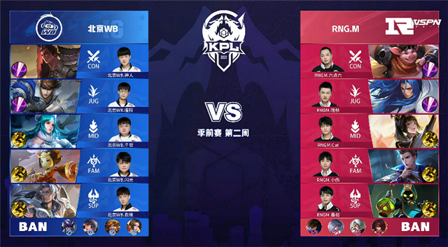 JRS直播吧 3月18日2021KPL春季赛季前赛第二周第一日比赛,由北京WB对阵RNG.M,以下是本场比赛快讯。