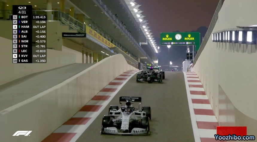 随后车手们回到维修区进行休整,准备向杆位发起最后的冲刺。最后3分钟,车手们再次出来,汉密尔顿做出了1分35秒332,超越了自己的队友,博塔斯进一步将自己的成绩提升到了1分35秒271,再次来到榜首。诺里斯这个单圈也非常不错,来到第三,但是维斯塔潘最后一圈不可思议的做出了1分35秒246,绝杀了杆位!博塔斯获得第二名,汉密尔顿只排在第三,接下来依次是诺里斯、阿尔本和塞恩斯。