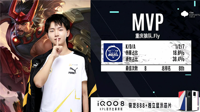 重庆狼队选用: 关羽、狄仁杰、西施、娜可露露、张飞