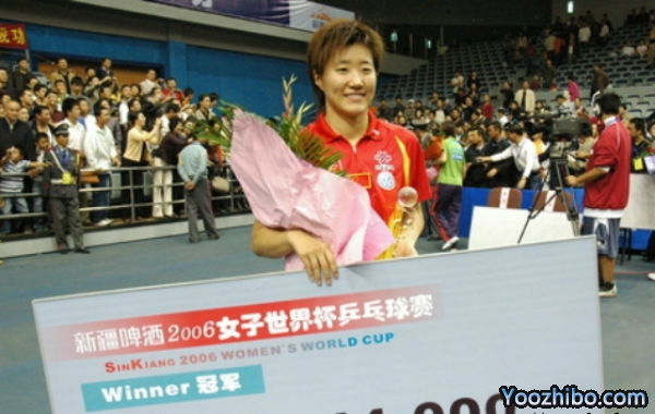 JRS直播吧讯:北京时间10月1日,2006年乒乓球女子世界杯赛昨天在新疆乌鲁木齐进行了决赛的比赛,排名世界第一的中国选手张怡宁与队友郭焱苦战7局,最终以3:4败北,郭焱获得了个人首个世界冠军,同时拿下了4.4万美元的奖金。