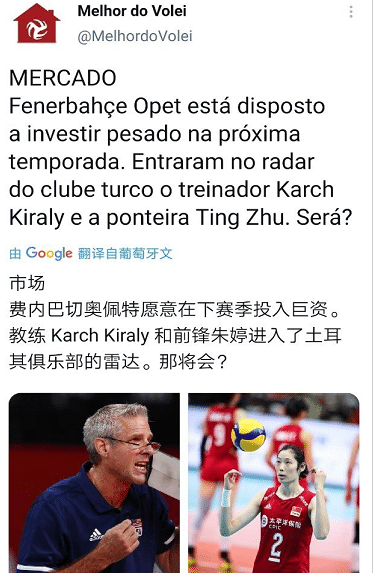 就在近日,有报道显示,土超豪门费内巴切希望能够引进朱婷,这是根据意大利记者帕西尼报道,称东京奥运会金牌主帅基拉里很有可能顶替特尔季奇,出任球队的主帅,同时球队投入资金,还将会极力引进朱婷。