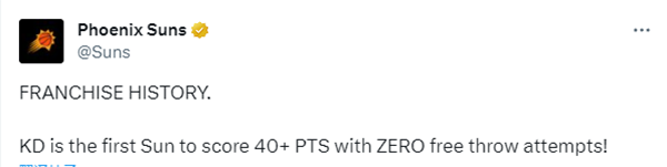 2、杜兰特成为太阳队史第一位0罚球轰下40+的球员