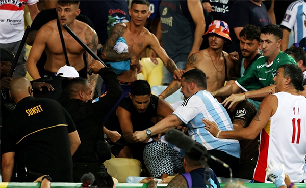 据悉在马拉卡纳的这次冲突接近3分钟,几乎贯穿了整个阿根廷国歌播放的过程,马拉卡纳的许多人流着血,许多害怕的孩子在哭泣。