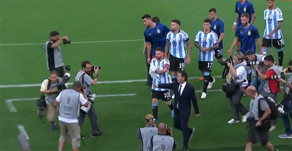 梅西等人翻越广告牌去拦架,大马丁不满巴西安保,险些发生冲突,被阿根廷队友拉走。