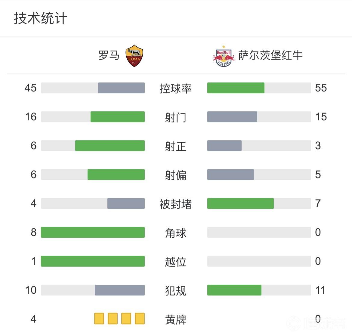 最终罗马主场2-0战胜萨尔茨堡,总比分罗马2-1淘汰萨尔茨堡晋级欧联杯16强。