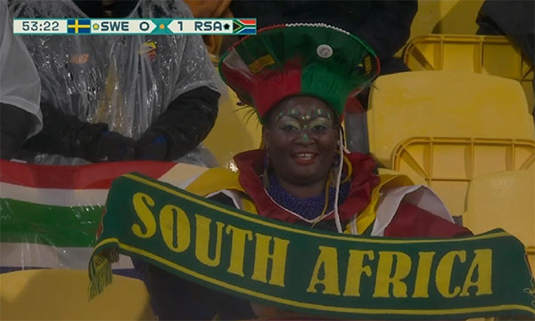 争议时刻出现在第32分钟,瑞典队通过角球发动进攻,安格尔达尔的射门疑似打在玛加亚手臂,主裁判未做出判罚。瑞典队的球员们非常不满,进行申诉,慢镜头来看南非球员张开的胳膊确实扩大了防守面积,而且碰到了球,但裁判不为所动。