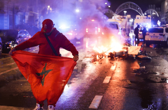 来源:JRS直播吧11-28 15:06JRS直播吧11月28日消息,世界杯小组赛F组第二轮,摩洛哥2-0击败比利时。对于摩洛哥来说,这是一场非常重要的胜利,意味着只要在末轮战平羸弱的加拿大,摩洛哥就能晋级世界杯16强。然而在赛后,令人不愿意看到的一幕发生了。在比利时当地的摩洛哥球迷,打砸商店且点燃汽车,而在荷兰鹿特丹,也有摩洛哥球迷闹事导致警察受伤。