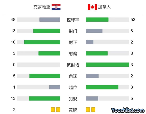全场比赛结束,最终克罗地亚4-1击败加拿大。