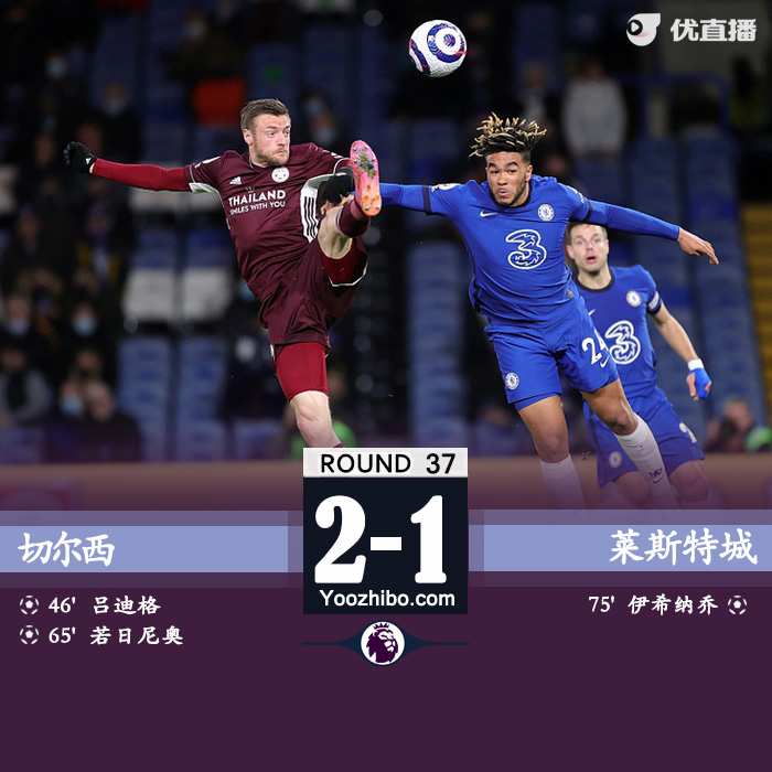JRS直播吧讯 5月19日讯 北京时间5月19日凌晨3点15分,2020-21赛季英超第37轮的焦点战在斯坦福桥球场展开角逐,切尔西坐镇主场迎战莱斯特城。上半场维尔纳两次进球被吹,下半场吕迪格打破僵局,维尔纳造点,若日尼奥点射,伊希纳乔替补扳回一城。最终切尔西主场2-1战胜莱斯特城,蓝军终结各项赛事两连败。积分榜方面,切尔西积67分升至第3名,莱斯特积66分位居第4名。