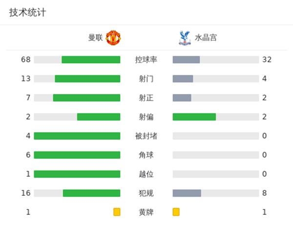 曼联3-0水晶宫 卡塞米罗传射加纳乔马夏尔破门
