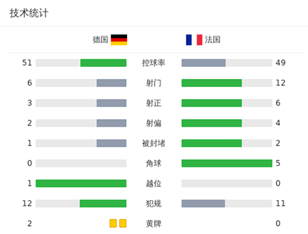 第4分钟,德国闪击得手!亨里希斯左路下底挑传穆勒门前胸部停球后抽射破门,德国1-0法国。