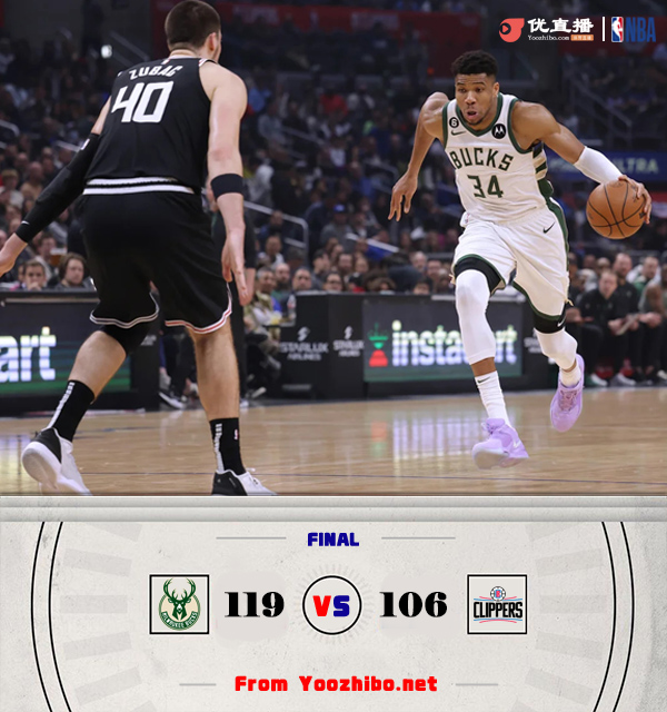 JRS直播吧2月11日讯 NBA常规赛,雄鹿客场挑战快船。快船西部第五,雄鹿东部第二。小卡本场缺阵。比赛开始,雄鹿反客为主率先发力,很快取得两位数领先,快船大举反击打出19-2反超比分,此后双方陷入缠斗,比分交替领先,半场战罢雄鹿54-51领先。易边再战,两队依旧难分伯仲,比分咬得很紧,雄鹿内外开花取得优势,末节快船命中率骤降,雄鹿不断拉大分差。最终,雄鹿击败快船,豪取10连胜。