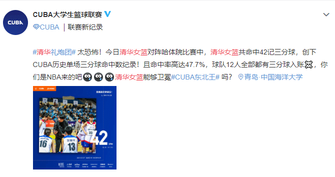 疯狂!清华女篮单场轰42记三分球创纪录,全力冲击CUBA第三冠