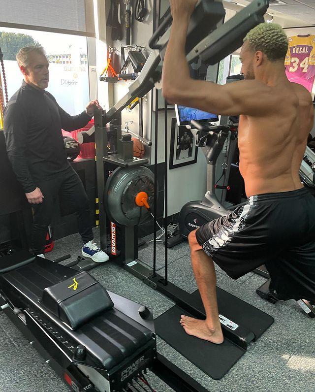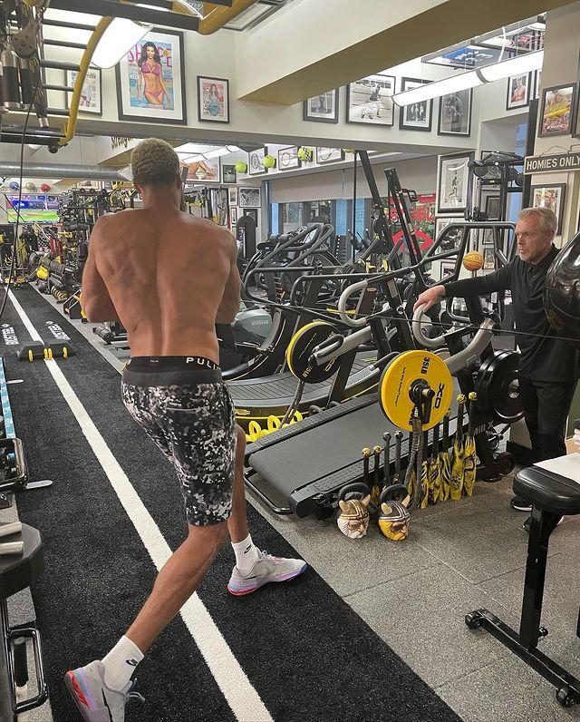 来源:JRS直播吧06-14 16:10JRS直播吧06月14日讯 ,爵士中锋鲁迪-戈贝尔更新社媒,晒出了自己的最新训练照。照片上的戈贝尔,已经染了一头金发,赤膊上阵,进行包括拳击在内的各项训练,硕大的肌肉格外抢眼。刚进入联盟时,戈贝尔还是一个看上去很瘦的中锋,力量和体重明显不足,经过几个赛季的苦练,如今的他已经越来越壮,俨然一个魔鬼筋肉人!戈贝尔晒照后不久,霍华德为他点赞。