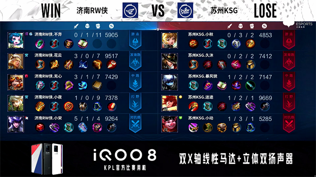 JRS直播吧讯 9月30日2021年KPL秋季赛常规赛第二周第二日第二场,由苏州KSG对阵济南RW侠,以下是本场比赛快讯。