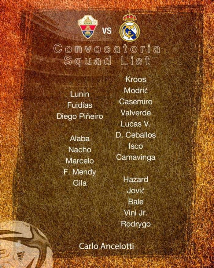 JRS直播吧01月20日讯 ,皇马公布了国王杯对阵埃尔切的大名单,贝尔时隔38天再次回归皇马大名单,阿森西奥缺席。
