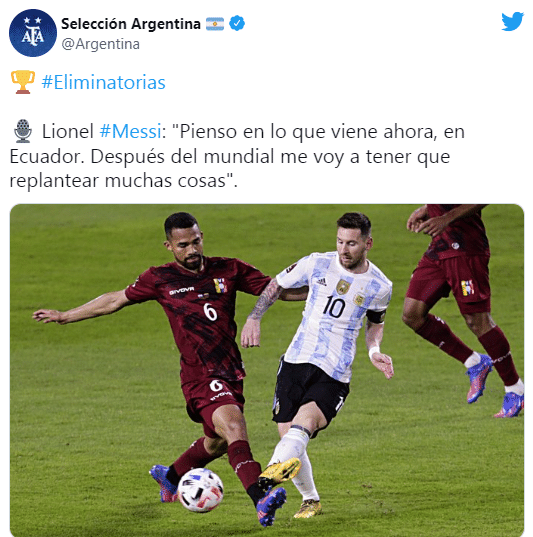 JRS直播吧03月26日讯 消息,阿根廷击败委内瑞拉后,梅西表示卡塔尔世界杯后他会重新考虑很多事情。