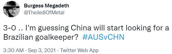 JRS直播吧9月03日讯 今天,国足在12强赛首轮0-3不敌澳大利亚,赛后一些国外球迷在社交媒体上开启了嘲讽模式。